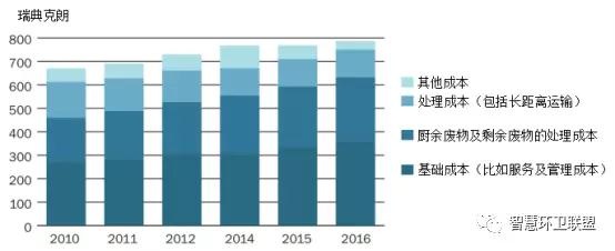 圖16. 瑞典2010~2016年期間的人均廢物管理費用