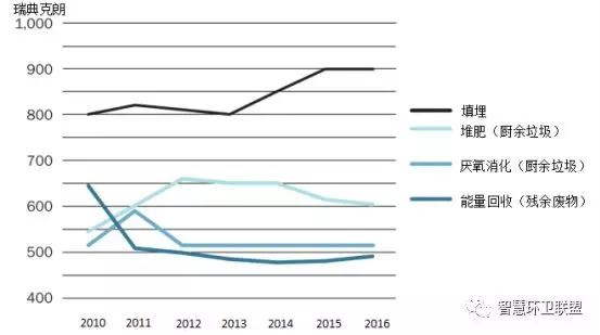 圖17. 瑞典2010~2016年期間的每噸廢物的處置費