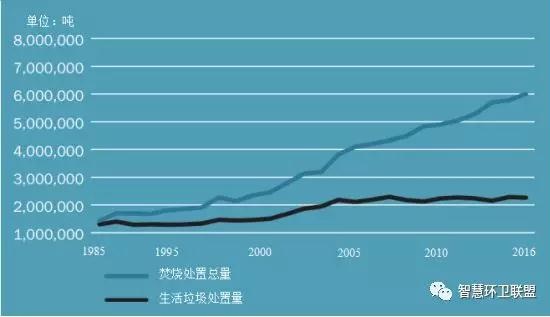 圖15. 瑞典1985~2016年期間的焚燒處置量