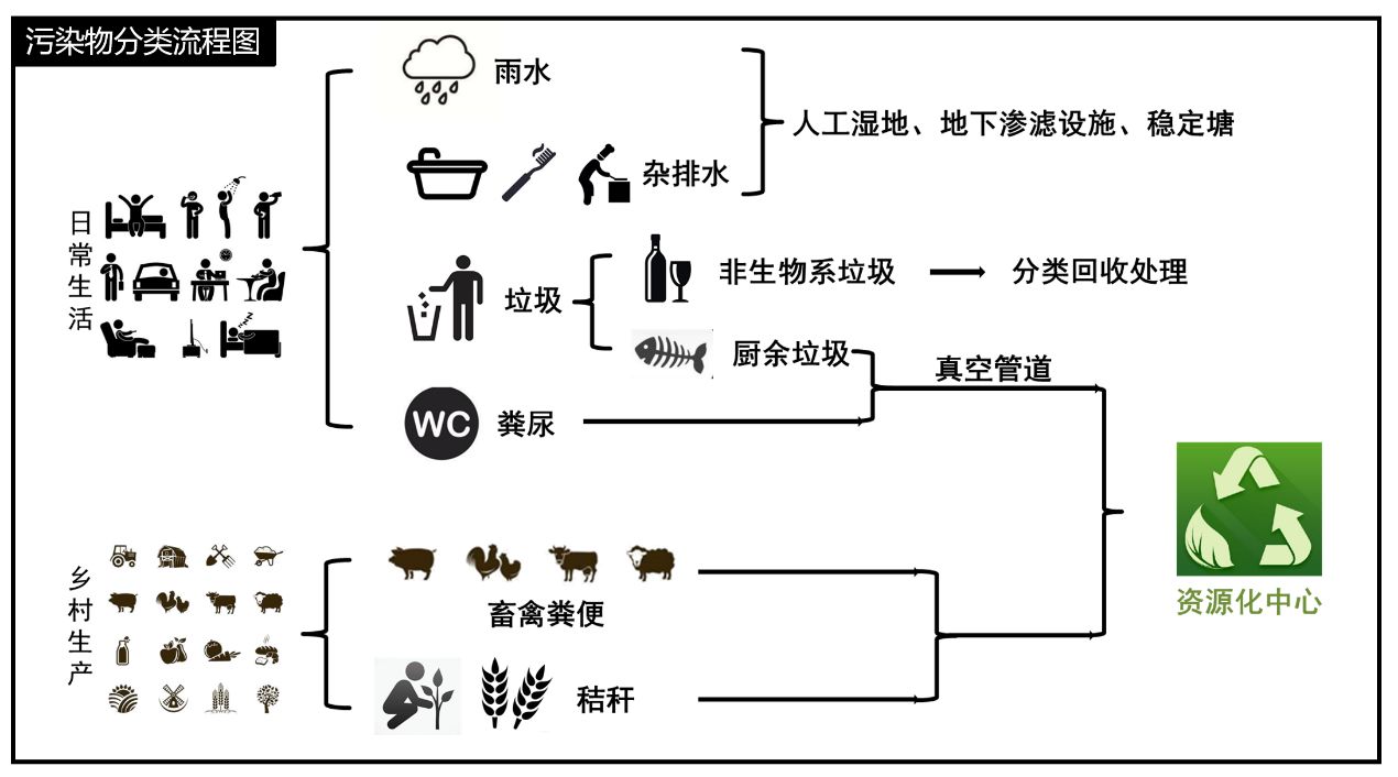 鄉(xiāng)村生活性污染物主要是人體排泄物(糞尿),清洗水,洗漱水與垃圾;生產(chǎn)性污染物主要是畜禽糞便和秸稈。
