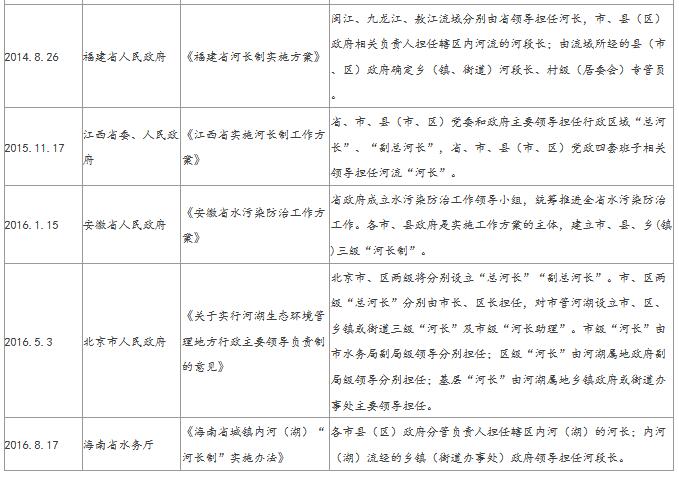 2016年12月14日,水利部、環(huán)保部,發(fā)布《關(guān)于全面推行河長(zhǎng)制的意見(jiàn)》實(shí)施方案,具體工作包括:確定河湖分級(jí)名錄、明確河長(zhǎng)制辦公室、細(xì)化主要任務(wù)、強(qiáng)化分類指導(dǎo)、明確工作進(jìn)度。