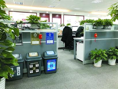 在國(guó)航貨運(yùn)辦公區(qū),記者看到,幾乎每?jī)膳殴の婚g就有一組垃圾桶,每組3個(gè)桶上用不同顏色標(biāo)識(shí)濕垃圾、干垃圾和可回收垃圾。蔡文韜說(shuō),企業(yè)內(nèi)部保潔員每天三次定時(shí)來(lái)工位清理垃圾,再按類別放至每層樓固定的大垃圾桶,由物業(yè)保潔將樓層垃圾分類清運(yùn)至整個(gè)大樓的垃圾廂房,最后由環(huán)衛(wèi)公司每天分時(shí)段運(yùn)走不同種類的垃圾。