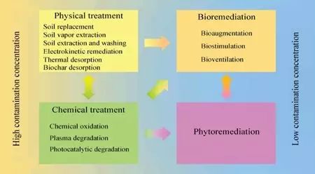 物理修復(fù)方法是利用物理原理和特定工程技術(shù),將土壤中的污染物移除或者轉(zhuǎn)化為無(wú)害形態(tài)。其主 要包括土壤置換、氣相抽提、萃取洗脫、電動(dòng)修復(fù)、熱脫附和生物炭吸附等。