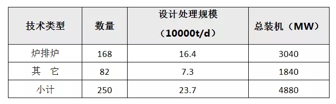 根據(jù)中國環(huán)聯(lián)研究院數(shù)據(jù)統(tǒng)計(jì),截至2016年年底,投入運(yùn)行的生活垃圾焚燒發(fā)電廠有250座,總處理能力為23.7萬噸/日,總裝機(jī)約為4880MW。其中采用爐排爐的焚燒發(fā)電廠有168座,合計(jì)處理能力達(dá)到16.4萬噸/日,裝機(jī)達(dá)到3040MW;其余主要為采用流化床的焚燒發(fā)電廠,總計(jì)有82座,合計(jì)處理能力為7.3萬噸/日,裝機(jī)達(dá)到1840MW。
