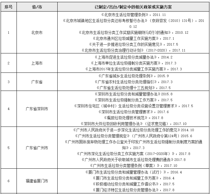 隨著更多省市地區(qū)開始推行垃圾分類,以政府購買服務(wù)形式進(jìn)行垃圾分類服務(wù)項目的地區(qū)將越來越多,2018年、北京、上海、浙江等地的垃圾分類服務(wù)業(yè)務(wù)必將擴大。