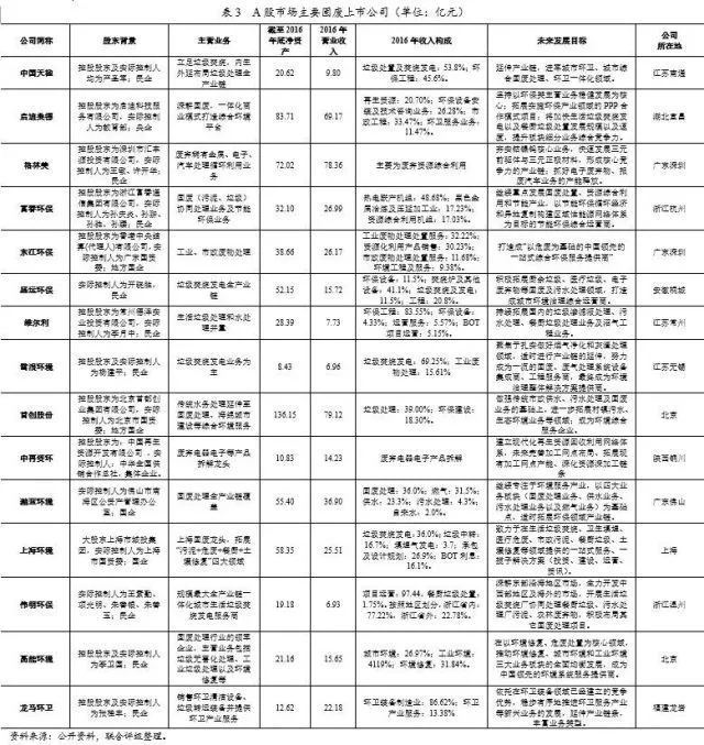 聯(lián)合評級對A股市場從事固廢處理行業(yè)的上市公司進(jìn)行了整理,具體公司情況如下表所示: