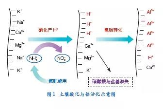土壤酸化對農(nóng)林業(yè)生產(chǎn)和生態(tài)環(huán)境會造成嚴(yán)重危害。酸化使土壤固相中的鋁活化并釋放進(jìn)入土壤溶液(圖 1),對農(nóng)作物根系產(chǎn)生毒害,影響作物生長。土壤酸化還會加速土壤養(yǎng)分的流失,使土壤肥力下降。因此土壤酸化將導(dǎo)致農(nóng)作物減產(chǎn),農(nóng)產(chǎn)品品質(zhì)下降,農(nóng)民收入減少。在嚴(yán)重酸化情況下(pH值<4.0),農(nóng)作物甚至無法生長,農(nóng)民顆粒無收。研究表明,酸性土壤pH值由5.4下降至4.7時,油菜籽減產(chǎn)達(dá)40%,花生和芝麻的減產(chǎn)幅度為15%左右。進(jìn)一步酸化將導(dǎo)致更大幅度的減產(chǎn),如當(dāng)土壤pH值由4.6 降至4.2時,油菜籽的減產(chǎn)幅度達(dá)62% 以上。土壤酸化還會嚴(yán)重影響農(nóng)產(chǎn)品品質(zhì),如:土壤酸化導(dǎo)致香蕉品質(zhì)下降,使得廣西金穗香蕉公司近年來遭受了上億元的經(jīng)濟(jì)損失。