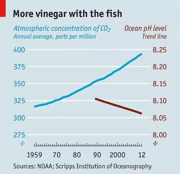 除了海洋塑料污染之外,還有不斷下降的海水pH值。海洋酸化并不是科學(xué)家之間的危言聳聽,而是實實在在的變化。