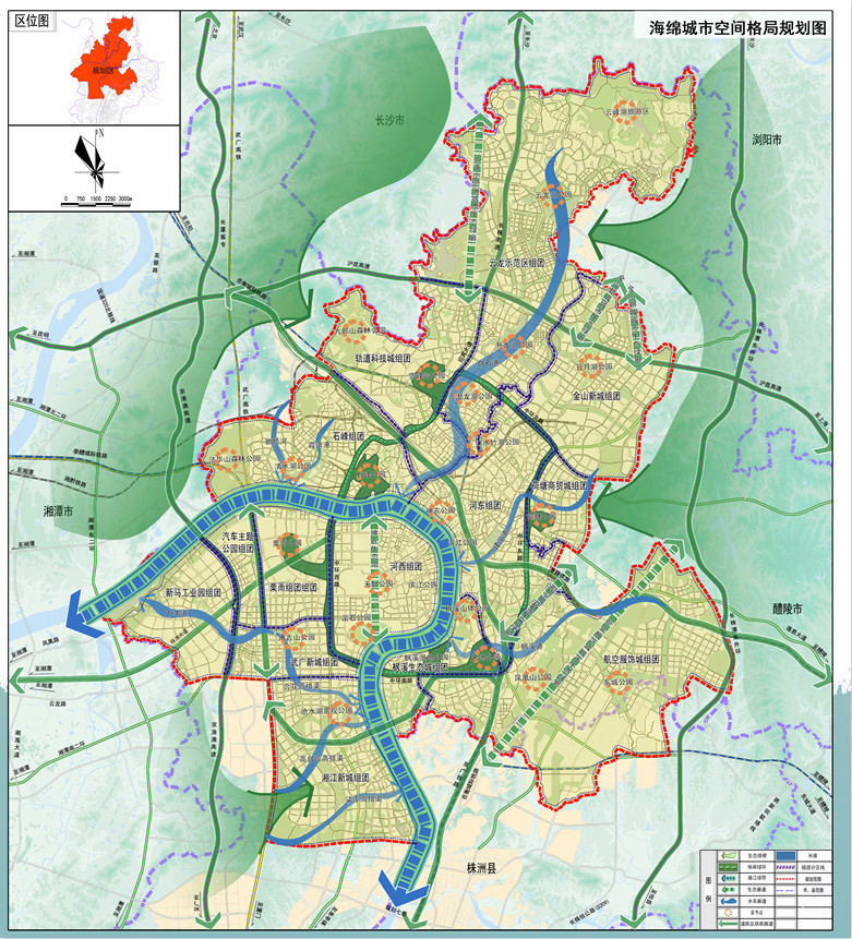 本次規(guī)劃范圍包括:株洲市城市總體規(guī)劃確定的2020年中心城區(qū)范圍+十大新城拓展范圍。總規(guī)劃面積約460平方公里,研究范圍886平方公里。