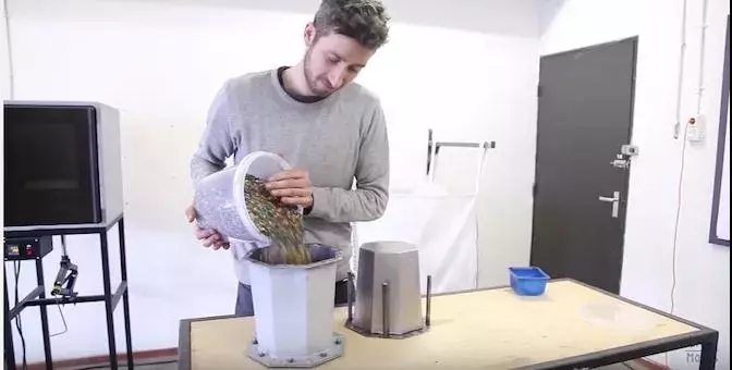 接下來,見證奇跡的時刻就到了!你只需要將塑料碎片倒進壓縮機中,塑料就會自動加熱,然后你把它們壓入模具。