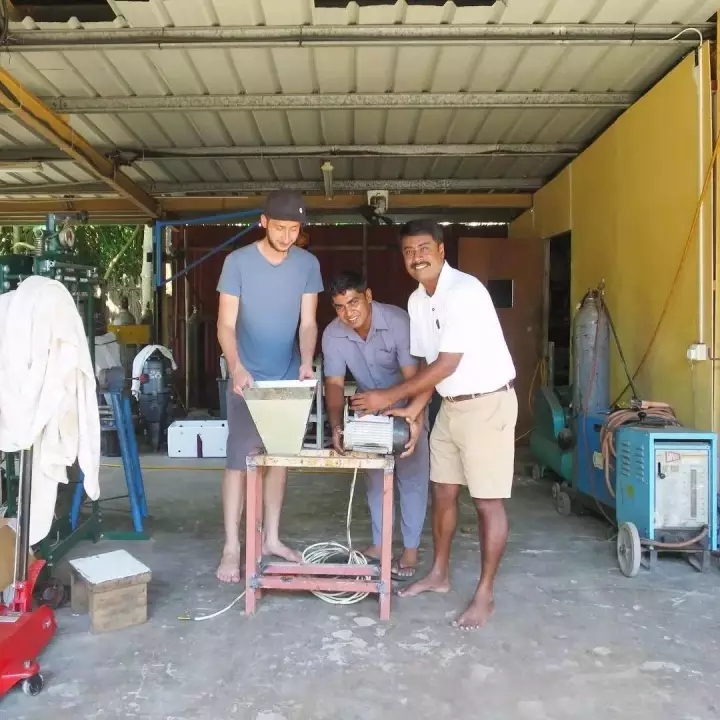 不過他的愿景更多的是希望帶領(lǐng)團隊走到全球各地,一起解決全球的塑料污染問題。事實上他一刻也沒停下腳步,比如Dave曾在馬爾代夫教當?shù)厝酥谱靼惭b回收裝置,