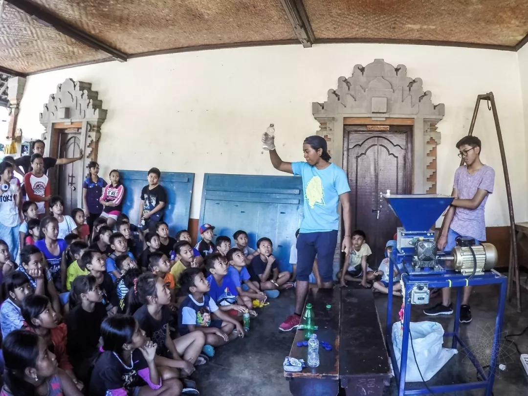 在印度尼西亞,教孩子們回收的常識。