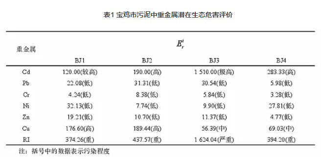 二、寶雞市污泥重金屬含量及風(fēng)險評價