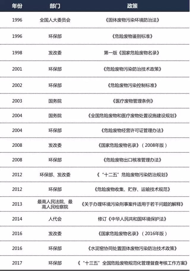 近年來危廢相關(guān)法規(guī)政策