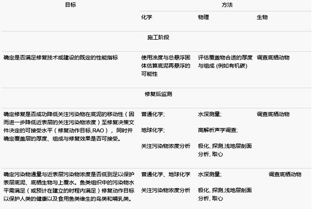 覆蓋層必須保持在正確的位置以便持續(xù)達(dá)到修復(fù)目標(biāo),并評(píng)估長(zhǎng)期覆蓋層的完整性(修復(fù)后監(jiān)測(cè))