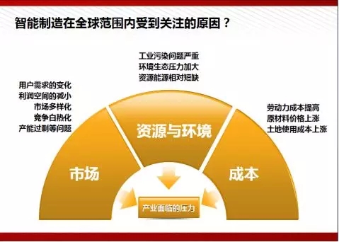 為什么是社會發(fā)展需要?現(xiàn)在實體經(jīng)濟面臨的壓力非常大,主要來自于三個方面,一跟環(huán)保有關(guān),資源與環(huán)境的制約;二是成本上漲,不僅是原材料土地成本,尤其是人力成本,人口紅利在消失,這也是對實體經(jīng)濟造成的制約;三是來自市場,以前市場同質(zhì)化競爭,利潤空間很小,現(xiàn)在新消費,大家需要定制化產(chǎn)品,以前工業(yè)化生產(chǎn)模式難以滿足未來市場多樣化的需求。