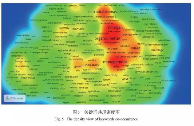 此外,土壤質(zhì)量早期的研究熱點(diǎn)主要集中農(nóng)業(yè)方面,且多描述單個(gè)土壤性質(zhì),例如有機(jī)質(zhì)、團(tuán)聚體等。隨著研究的不斷深入,當(dāng)前涌現(xiàn)出土壤修復(fù)、碳匯、最小數(shù)據(jù)集、土地利用變化、森林、群落等一些研究熱點(diǎn),這也體現(xiàn)出土壤質(zhì)量的研究開始傾向于環(huán)境方面。