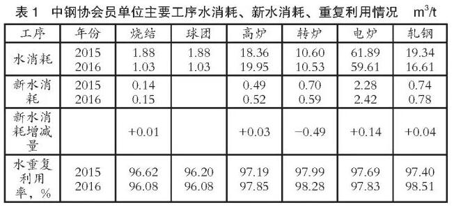 近年,中鋼協(xié)會員單位主要工序水消耗、新水消耗情況見表1。