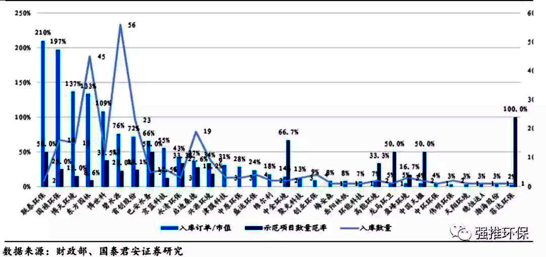 4)環(huán)保項目需求剛性,受影響較小:環(huán)保PPP合計清庫項目 377 個,金額 1300 億元,占比清庫總規(guī)模約 5%,環(huán)保PPP憑借明確的運營績效掛鉤機制,模式更符合 PPP 的初衷,基本不受清庫規(guī)則影響。根據(jù)我們對環(huán)保上市公司 2017 年以來公告的 PPP 訂單梳理,無項目實質(zhì)性被從庫內(nèi)清除。板塊上市公司中多家入庫訂單/市值比超過100%,且在手優(yōu)質(zhì)項目占比高的企業(yè)項目進度和銀行信貸并未受本次清庫而中斷,業(yè)績兌現(xiàn)性更強。