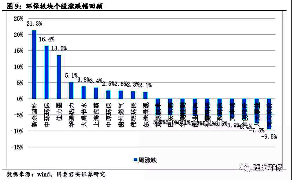 環(huán)保&公用板塊上周漲跌幅
