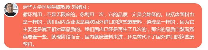 今年以來,隨著禁令實施,浙江、天津等地很多塑料加工廠關(guān)停,國內(nèi)廢塑料價格一路上漲,卻仍然有幾百萬噸缺口。國外進(jìn)口廢塑料的價格要比在國內(nèi)回收價格貴30%-40%,但很多企業(yè)還是偏向于選擇進(jìn)口廢塑料,原因是國外垃圾分類做得較好,且塑料品質(zhì)比較高,而國內(nèi)廢塑料雜質(zhì)太多,分離成本高,因此“土垃圾”比不上海外運來的“洋垃圾”。