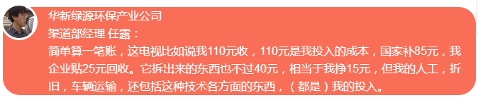 事實上,從2012年7月開始,國家就已經(jīng)對正規(guī)電子垃圾拆解企業(yè)進(jìn)行35—85元不等的財政補貼,但幾年的時間過去,這一行業(yè)卻沒有出現(xiàn)預(yù)期的良性發(fā)展。