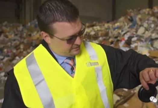 McKay用一個大耙子從垃圾堆里將不可回收的物品扒出來, 其中包括一個裝有狗糧的袋子以及一個印有可回收字樣的黑色塑料咖啡杯蓋, "無論從外觀、手感還是標識看, 它都是可回收垃圾,然而它不是!"