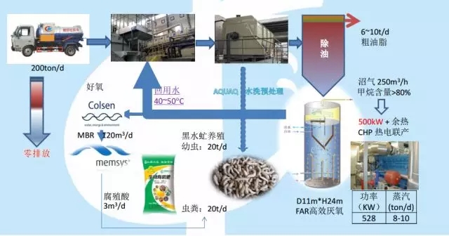 合肥市餐廚垃圾資源化利用和無(wú)害化處理工程(一期)項(xiàng)目則采用的是“水洗分選預(yù)處理+高效厭氧+生物好氧堆肥”路徑。項(xiàng)目日處理量為200噸/日,有機(jī)肥產(chǎn)量近60噸/日。利用黑水虻輔助堆肥處理,極大地降低了堆肥處理時(shí)間,加強(qiáng)了堆肥處理效率,而經(jīng)過(guò)水洗+高效厭氧處理的純凈物料又使得黑水虻的養(yǎng)殖效果更佳,而黑水虻本身亦可用于蛋白質(zhì)生產(chǎn)。采用黑水虻養(yǎng)殖工藝極大地增長(zhǎng)了餐廚垃圾資源化收益。