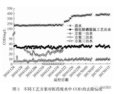 2.1.1不同工藝方案對(duì)COD的去除效果