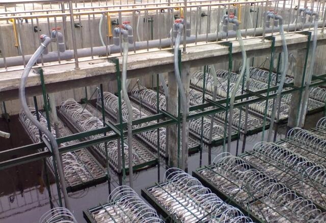 3、 每個膜組件曝氣都設置單獨的調(diào)節(jié)閥,同時整個生化槽的充氧曝氣要另外做單獨的控制閥,用微孔充氧曝氣裝置,確保能靈活調(diào)整攪拌空氣量和充氧空氣量。
