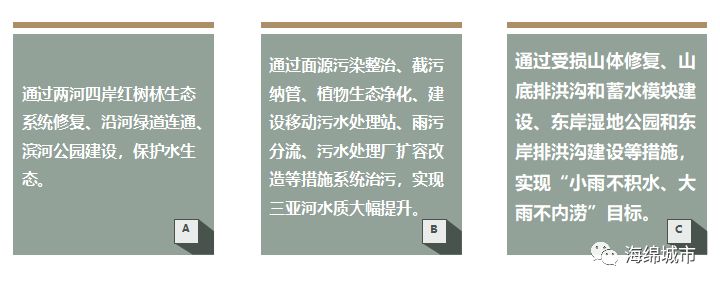 在海綿建設(shè)過程中,三亞市始終堅持“三個優(yōu)先”即生態(tài)效應(yīng)優(yōu)先于經(jīng)濟(jì)利益、民生訴求優(yōu)先于景觀效果、長遠(yuǎn)利益優(yōu)先于眼前利益。并始終堅持保護(hù)生態(tài)環(huán)境就是保護(hù)海南的金飯碗和生命線。