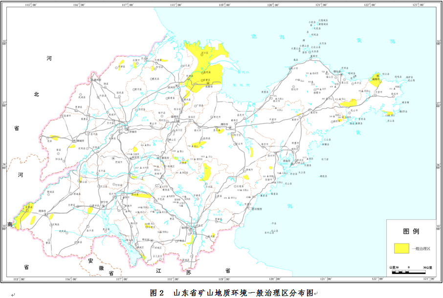 根據(jù)山東省礦山地質(zhì)環(huán)境調(diào)查最新成果,結(jié)合《全國礦產(chǎn)資源規(guī)劃》《山東省礦產(chǎn)資源總體規(guī)劃》中有關(guān)礦山地質(zhì)環(huán)境治理分區(qū)結(jié)果,充分考慮重點礦山地質(zhì)環(huán)境問題發(fā)育現(xiàn)狀和影響范圍,劃分礦山地質(zhì)環(huán)境重點治理區(qū)和一般治理區(qū)。