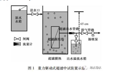 以超濾為核心的第三代凈水技術(shù)發(fā)展迅猛,國內(nèi)越來越多的大型水廠(5萬~30萬m3/d)采用超濾工藝,并且超濾工藝亦應(yīng)用于農(nóng)村飲用水工程(50~500 m3/d)。伴隨著膜工業(yè)的高速發(fā)展,超濾膜的造價持續(xù)下降,使得低通量超濾工藝成為可能。基于以上特點,科研工作者開始關(guān)注以重力勢能為驅(qū)動力的低壓超濾技術(shù)。