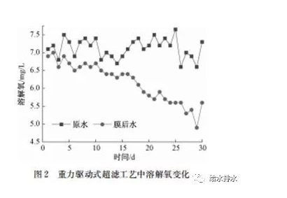 3.1重力驅(qū)動式超濾工藝溶解氧的變化