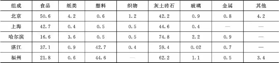 表1.我國部分城市固廢組成(數據來源于智污邦聯環(huán)保管家平臺)