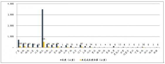 部分黑臭水體治理水體長(zhǎng)度