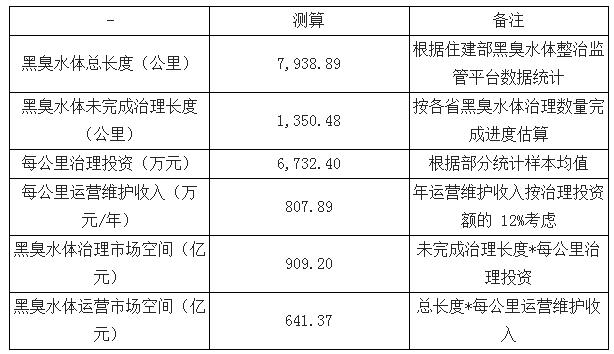 黑臭水體治理、運(yùn)營(yíng)市場(chǎng)空間測(cè)算