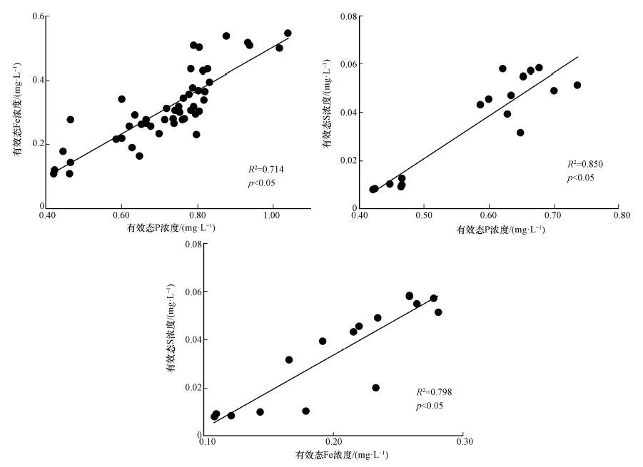 3.3 沉積物有效態(tài)P、Fe、S的耦合關系分析