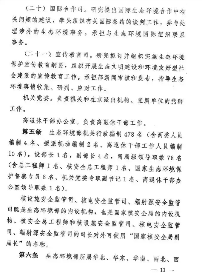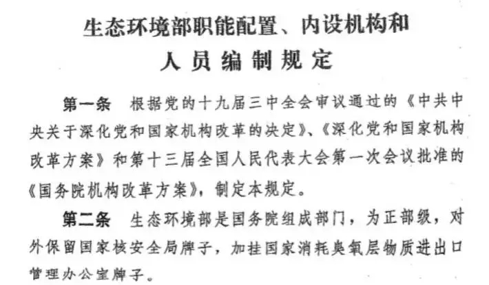 據(jù)有關(guān)人士透露,這一方案在原環(huán)境保護(hù)部“三定”方案基礎(chǔ)上,有了很多不同。明確生態(tài)環(huán)境部是國(guó)務(wù)院組成部門(mén),為正部級(jí),對(duì)外保留國(guó)家核安全局牌子,加掛國(guó)家消耗臭氧層物質(zhì)進(jìn)出口管理辦公室牌子。