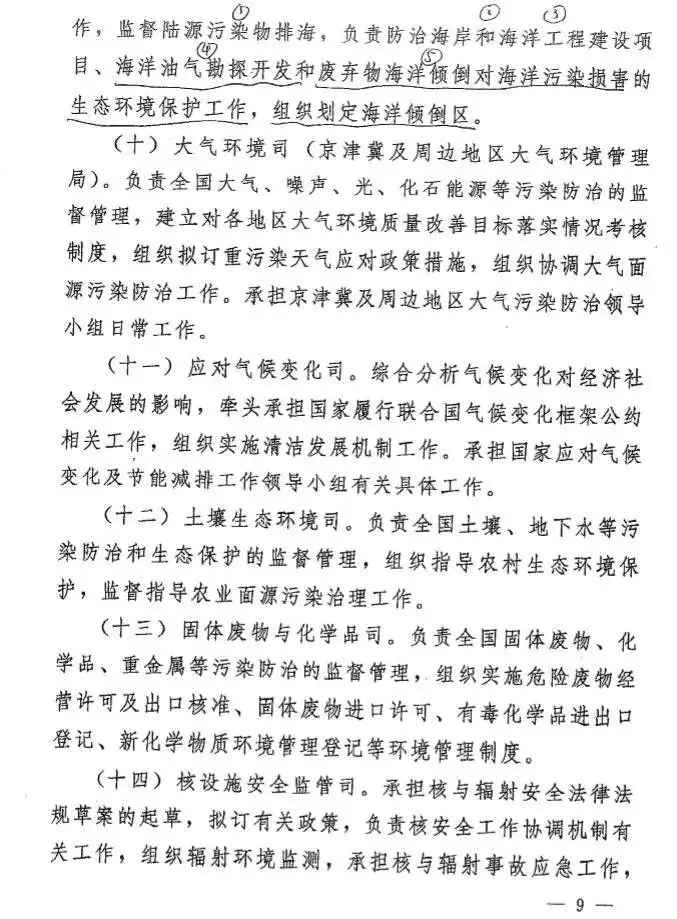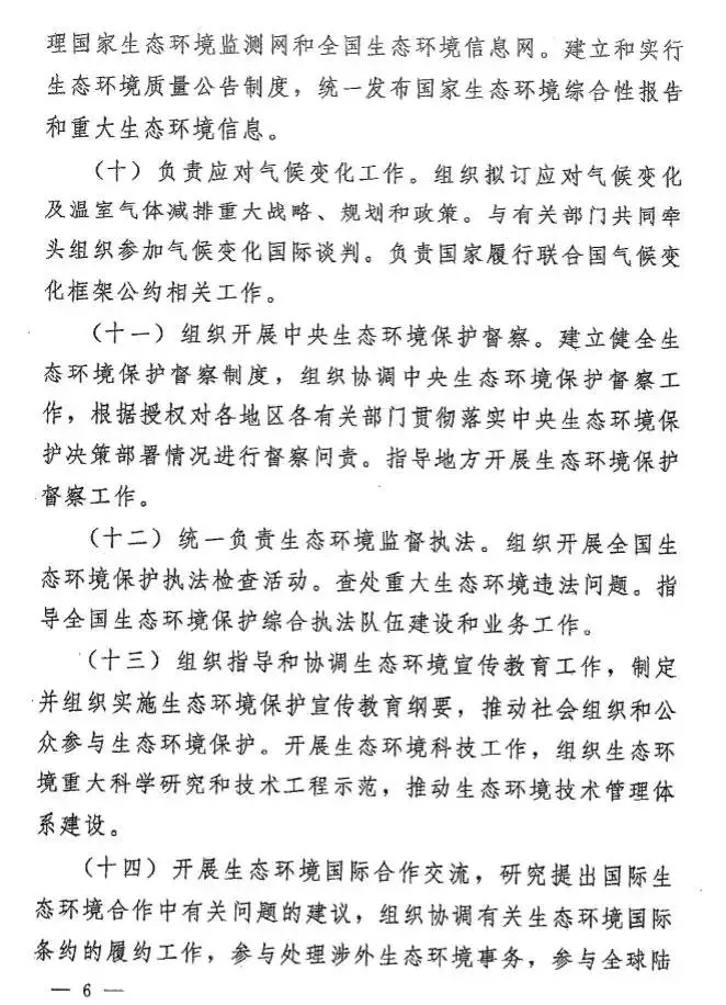 此外,在生態(tài)環(huán)境部的職能中,又增加了幾項(xiàng)重要工作,即負(fù)責(zé)應(yīng)對(duì)氣候變化、組織開(kāi)展中央生態(tài)環(huán)境保護(hù)督察、海洋生態(tài)環(huán)境監(jiān)管等。