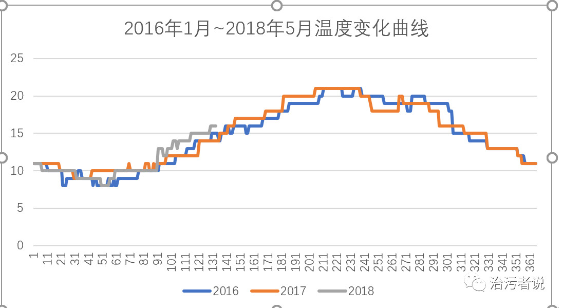 預管理措施的實施需要對廠內的水溫變化進行詳細的跟蹤和記錄。一個污水廠在運行期間,由于所處地區(qū)不變,居民生活習慣不變,管網建設不變,因此每年水體溫度變化基本不會發(fā)生明顯的變化。作為預管理措施,需要對水體變化的溫度進行詳細的記錄,當積累到1~2年的溫度變化之后,就能夠準確的判斷出一年中水溫的變化情況了。而預管理措施也能夠根據溫度的變化走勢,提前采取運行管理措施。