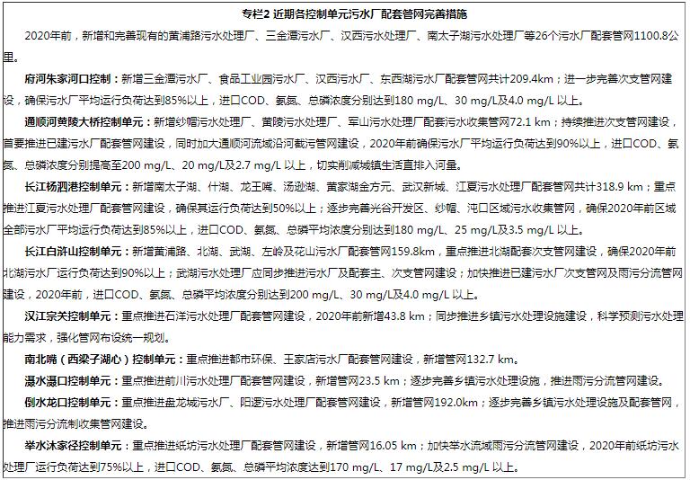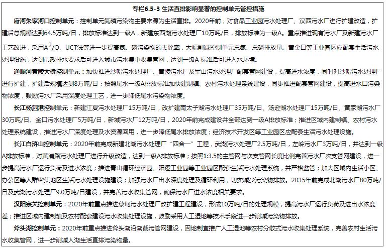 加快城鎮(zhèn)污水處理設(shè)施提標(biāo)改造。梁子湖、斧頭湖等敏感區(qū)域內(nèi)的現(xiàn)有城鎮(zhèn)污水處理設(shè)施2016年底前達(dá)到一級A排放標(biāo)準(zhǔn);新建城鎮(zhèn)污水處理設(shè)施執(zhí)行一級A排放標(biāo)準(zhǔn),現(xiàn)有處理設(shè)施需強(qiáng)化脫氮除磷工藝,逐步達(dá)到一級A排放標(biāo)準(zhǔn)。2020年前,灄水灄口控制單元、倒水龍口控制單元、舉水沐家徑控制單元、長江白滸山控制單元、長江楊泗港控制單元等重點(diǎn)區(qū)域內(nèi)污水廠應(yīng)完成提標(biāo)改造,出水達(dá)到一級A排放標(biāo)準(zhǔn);2035年前,研究基于水環(huán)境質(zhì)量目標(biāo)的城鎮(zhèn)生活污水廠出水排放指標(biāo)及要求,完成全市城鎮(zhèn)污水處理廠達(dá)標(biāo)改造工程。
