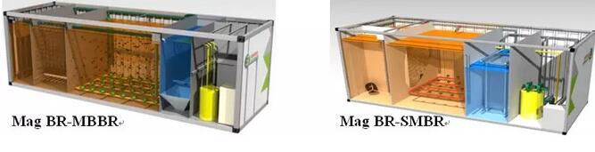 針對全國各敏感區(qū)域和河流要求排放水體水質(zhì)達到準(zhǔn)四類的高標(biāo)準(zhǔn)要求,環(huán)能科技開發(fā)了MagBR-SMBR磁介質(zhì)膜生物反應(yīng)器。該產(chǎn)品是集傳統(tǒng)活性污泥法(A2/O)和膜生物反應(yīng)器(MBR)為一體的高度集成的污水處理設(shè)備。