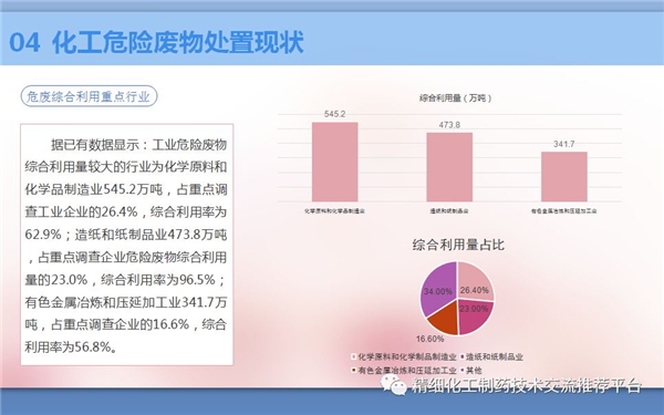 目前,我國(guó)化工行業(yè)產(chǎn)生的危險(xiǎn)廢物量大、種類多、成分復(fù)雜。在國(guó)家對(duì)環(huán)境保護(hù)的要求越來越高,對(duì)危險(xiǎn)廢物管理越來越嚴(yán)的趨勢(shì)下,化工行業(yè)面臨大量化工危廢,如廢酸、廢堿、廢鹽及其它廢渣的處置壓力,實(shí)現(xiàn)化工危險(xiǎn)廢物的減量化、資源化和無害化是化工行業(yè)亟需解決的重要難題。