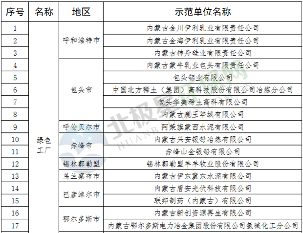 共23個企業(yè) 內(nèi)蒙古自治區(qū)第二批綠色制造示范名單