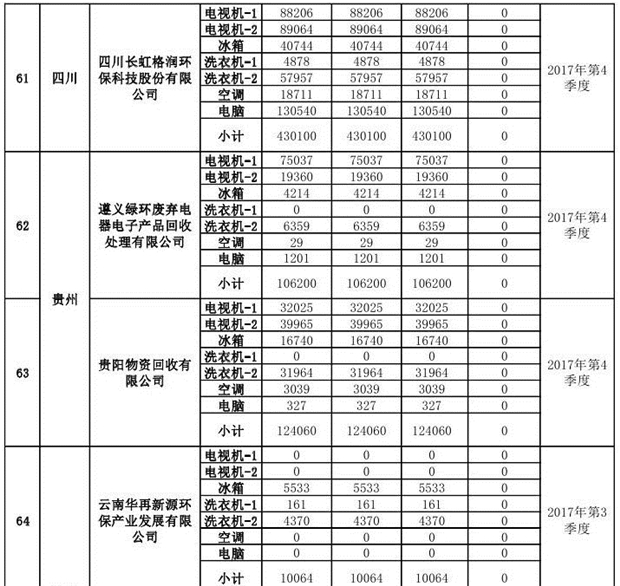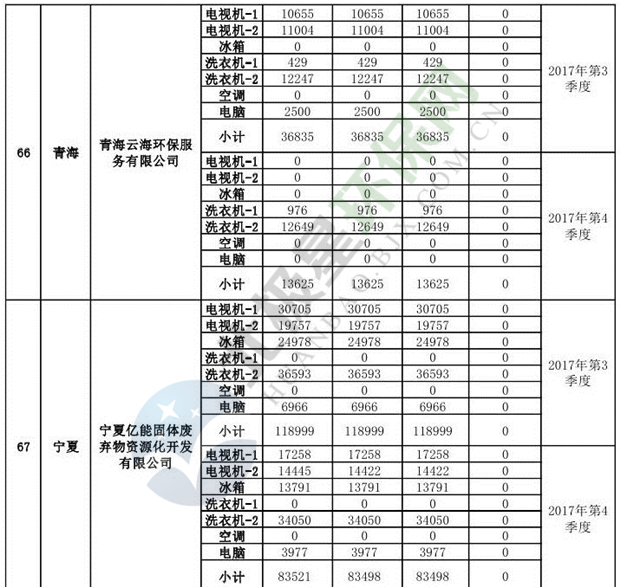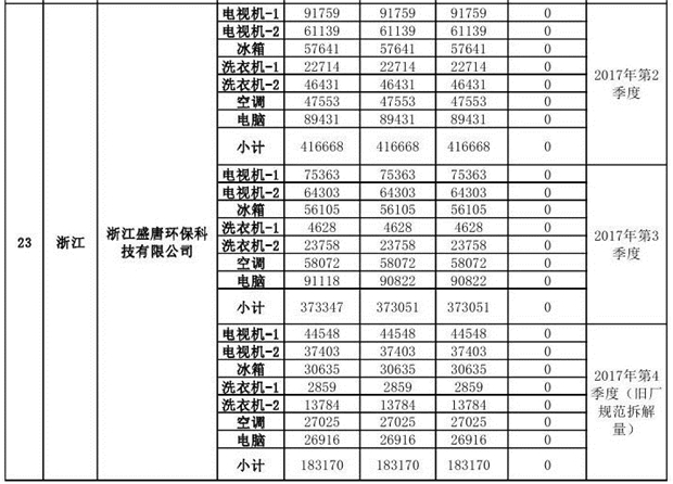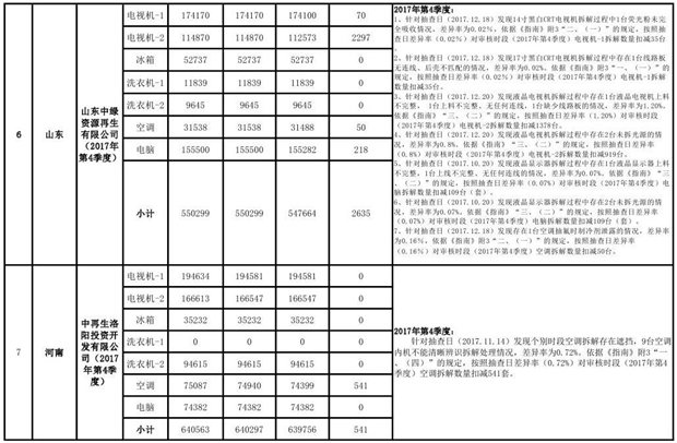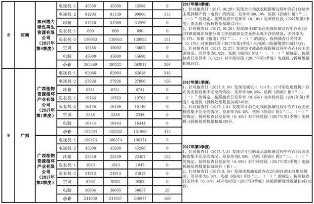上述69家通過(guò)技術(shù)復(fù)核的企業(yè)申請(qǐng)廢電器規(guī)范拆解處理數(shù)量為26342953 臺(tái)(套);經(jīng)省級(jí)環(huán)保部門審核認(rèn)定廢電器規(guī)范拆解處理數(shù)量為26306765臺(tái)(套),扣減36188臺(tái)(套);部固管中心通過(guò)技術(shù)復(fù)核擬確認(rèn)廢電器規(guī)范拆解處理數(shù)量為26242476臺(tái)(套),扣減64289臺(tái)(套)(詳見(jiàn)附件)。