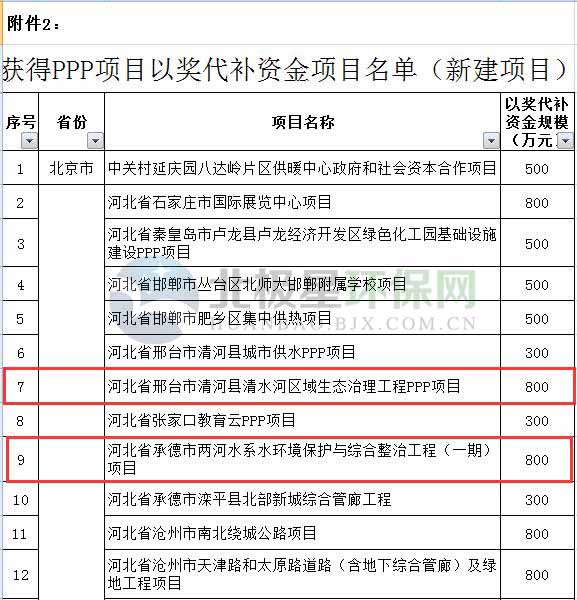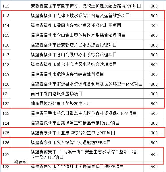 日前,財(cái)政部發(fā)布《關(guān)于下達(dá)2018年度普惠金融發(fā)展專項(xiàng)資金預(yù)算的通知》,并隨文公布了獲得PPP項(xiàng)目以獎(jiǎng)代補(bǔ)資金項(xiàng)目名單,其中新建項(xiàng)目383個(gè),存量項(xiàng)目11個(gè)。涉及大批流域綜合治理、污水處理廠、生活垃圾焚燒發(fā)電,環(huán)衛(wèi)等環(huán)保領(lǐng)域項(xiàng)目。詳情如下: