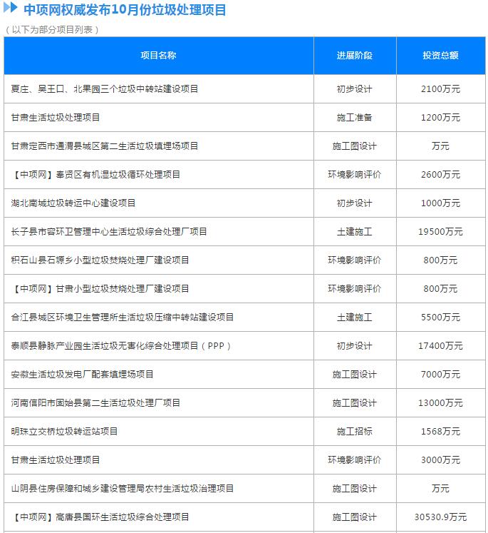 原標題:10月份全國擬在建垃圾處理項目