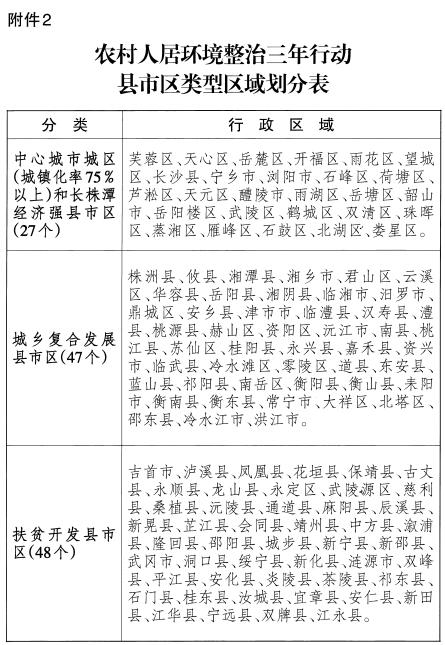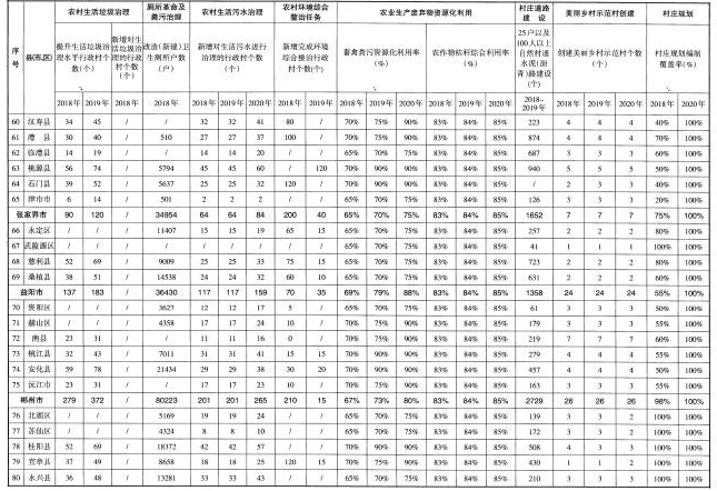 中心城市城區(qū)和長株潭經(jīng)濟強縣市區(qū)農(nóng)村人居環(huán)境質(zhì)量全面提升,所有村莊生活垃圾得到有效治理,垃圾分類減量和資源化利用全覆蓋,村莊日常保潔機制全面建立,農(nóng)戶衛(wèi)生廁所普及率達到100%,廁所糞污基本得到處理或資源化利用,村內(nèi)主要道路全部硬化,人居環(huán)境管護長效機制全面建立。
