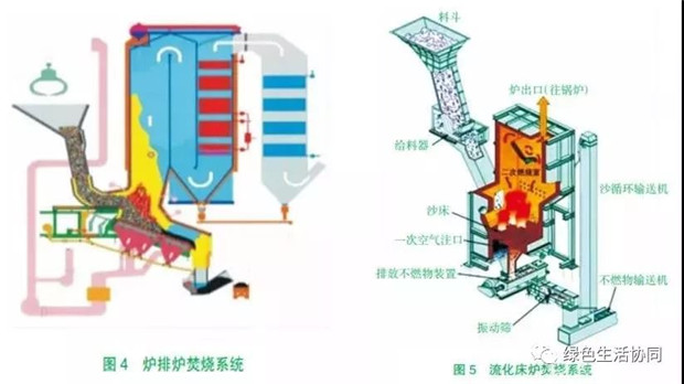 其中焚燒爐是垃圾焚燒發(fā)電的核心,決定著垃圾處理的效果和運行的經濟性。焚燒爐充分燃燒后才能達到無害化和減量化的目標。常用的焚燒爐有爐排爐、流化床焚燒爐、熱解焚燒爐、回轉窯等類型。下面介紹最為常見的爐排爐和循環(huán)流化床兩種模式。
